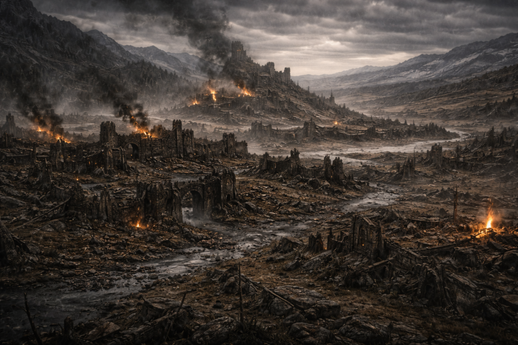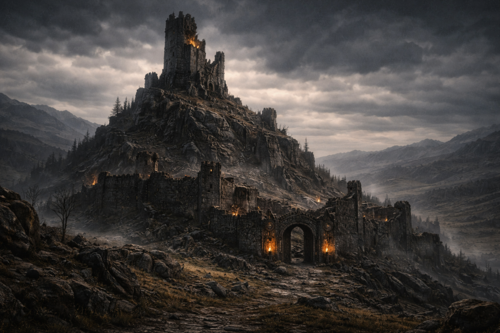 In den vom Feind besetzten Teilen von Rhudaur lässt der König Elmen II. des Bergvolks Befestigungsanlagen bauen. Große Teile des Waldes werden abgeholzt, um Belagerungstürme und Katapulte zu bauen.