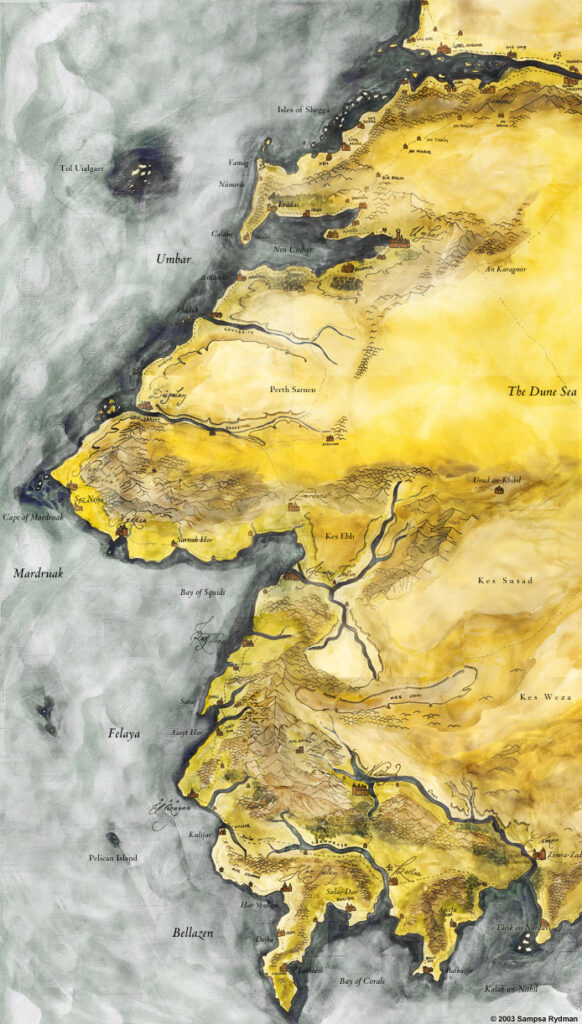 „Machat et ahid, Machat et fachur. Maet allach dafet jursad“ – Die Wüste ist groß, die Wüste ist weit. In ihr wird alles Schatten“ (Haradrimisches Sprichwort)