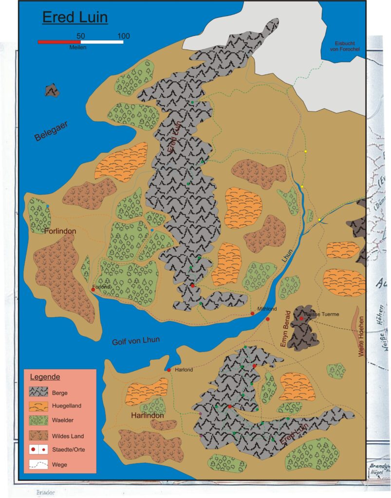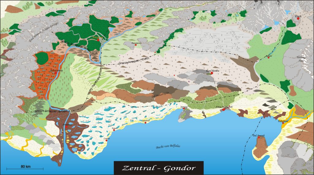 Karte nachgezeichnet nach Atlas von Karen W. Fonstad (Anfang 2000)
